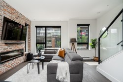 Welcome to Platform! This beautifully designed 3 bed, 3 bath corner unit townhome is located just steps from Rocky Point Park. Boasting THREE parking spaces, this home offers the perfect blend of style and space in one of Port Moody´s most sought-after neighborhoods. Showcasing an open and airy layout while the gourmet kitchen flows seamlessly into the dining and living areas. Enjoy breathtaking mountain and easterly views from your private rooftop patio. The main level also features a large wraparound patio, ideal for BBQs, gardening, or lounging in the sun. Located just minutes from breweries, cafes, the SkyTrain, and scenic trails, this home offers the best of urban living with nature at your doorstep. BUYER INCENTIVES!! 1) One FULL YEAR of paid strata fees 2) $3500 decor allowance