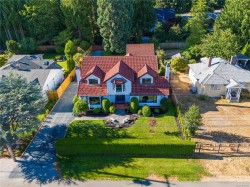 Stunning Heritage home in Qualicum Beach. Facing the Golf Course and mere minutes from the Beach, this house has a stately presence, dramatic appeal and a gracious, immaculate, updated interior.Custom built in a classic style, you will find grand rooms of spacious design and tall ceilings. A private den or office with fireplace, primary bedroom on the main floor with stained glass windows and a luxurious new bathroom ensuite. To accommodate the sizeable dining room, there is a beautiful modern kitchen with massive island and stone countertops, a large pantry and spacious laundry room that can easily be a mudroom or hobby room too with access to the rear gardens where a stone patio is set for your afternoon beverage in complete privacy with only the music of the fountains nearby.On the upper floor are identical bedrooms with dormer window views over the golf course' myriad of trees towards the ocean easily seen in the winter after the leaves fall. Irresistible!