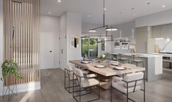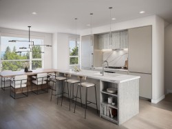 Welcome to Onward — a boutique collection of modern townhomes in Richmond. This spacious three-level home features 3 bedrooms plus a fully finished legal rental suite, ideal for extended family, guests, or additional income potential. The open-concept main floor includes a German-crafted kitchen with high-profile quartz countertops, premium Fulgor Milano appliances, and an oversized island perfect for entertaining. The primary suite offers a walk-in closet and spa-inspired ensuite with a double vanity and glass shower. Enjoy a 508 sq. ft. patio, EV-ready double garage (512 sq. ft.), and refined details throughout — including underfloor-heated bathrooms and designer finishes for an elevated lifestyle.