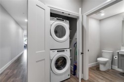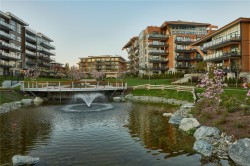 NEW PRICE - Gorgeous 2 Bedroom, 2.5 Bath & Den suite in Travino! Situated in the newest "Gardens" building, this BRIGHT & functional corner floor plan offers bedrooms on opposite sides of the suite (each with their own ensuite) plus a den/office with tons of built-in storage & Murphy wall bed. Fresh paint throughout, Laminate flooring, 9ft ceilings, kitchen with quartz countertops & large eating bar. Spacious west facing deck with gas hook up for the BBQ. TWO SECURE UNDERGROUND PARKING SPACES (one includes ev charger) & storage locker. This building also features a common roof top deck plus access to an onsite fitness centre & multi-purpose areas. Within walking distance to Royal Oak Shopping Centre, Broadmead Village, bus exchange, Commonwealth Place & more. Travino is an award winning development which includes central heating, air conditioning and hot water in your monthly strata fee. Common garden plots, kayak storage, car & pet washing stations.