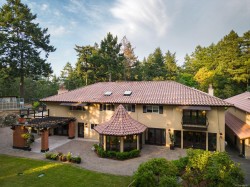 Tucked away in the serene Queenswood neighbourhood, "Villa de Shannon" is a stunning Spanish-style estate set on a peaceful, tree-lined road. This private retreat, surrounded by a 1.89-acre park-like garden, is accessed via a gated entrance and a sweeping circular driveway. Spanning over 8,000 sqft, the home offers 6 bedrooms, 8 bathrooms, and spacious, well-designed living areas. Its architectural charm shines through with high ceilings featuring exposed beams, elegant arched doorways, and a blend of tile and new hardwood floors. Highlights include a sophisticated billiards room, a private nanny suite, a wine cellar, dedicated studio and gym spaces, a four-car garage, a greenhouse, and more, all nestled within beautifully landscaped grounds.