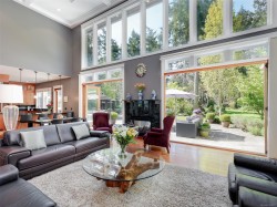 This custom-built home in the Queenswood neighbourhood offers luxury, privacy, and natural beauty. Built in 2012 with seismic-resistant steel beams, it combines style with peace of mind. Connected to municipal water, sewer, and natural gas, Set on a 1.6-acre, fully fenced estate with mature landscaping, the living room features 20-foot ceilings and accordion-style glass doors leading to a huge terrace with an indoor/outdoor fireplace. The gourmet kitchen with walk-in pantry opens to the dining & living areas with custom millwork. Main floor primary suite has terrace access and garden views. Each bedroom has an ensuite, and the Control4 system manages lighting, media, and climate. Entertain in the theatre, games room with bar, or exercise studio. Additional features include a 5-car garage, A/C, 400-amp underground service, and RV/boat parking. Near beach access, parks, schools, and Cadboro Bay Village, this home offers both seclusion and convenience. A resilient sanctuary built to last.