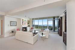 SAYWARD HILL LIFESTYLE, overlooking world-class golf at Cordova Bay, sandy beaches, walking/biking trails, Mattick's Farm shops all nearby. This premiere, 2008 JAWL DEV. concrete/steel building is sought-after with its spectacular views, amazing layout, quality finishing and perfect positioning. An elegant home, meticulously maintained offering 2BD, 2BA, Media Room plus Home Office in 1,856sf, with designer inspired updates inc: paint, wool carpeting, lighting, motorized blinds, appliances, HWT and move-in ready! No compromising with the spacious kitchen, 11' granite island, gas cooktop, eating bar and gas BBQ outlet for alfresco dining on the covered balcony offering views of Mt. Baker, Hunt Valley, the islands and mountains beyond. Retreat in the luxurious primary bedroom with access to the balcony, inspiring views and elegant ensuite with soaker tub, separate shower, dual sinks and marble counter. Secure U/G parking with EV Charging & storage.