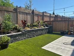 Welcome to Hillside Terrace, a neighbourhood of townhomes, with unit #5 offering 1567 sq/ft of tastefully designed living space, complemented by driveway parking and plenty of garage space. The open concept main level features plank flooring throughout, and contains the living room, dining area, powder room, and kitchen with shaker-style cabinets, quartz counters, and an 8’ sit-at island with a spot for your beverage fridge. Just off the kitchen, enjoy views of the lake, mountains and the city lights from your 15'x6' deck-a great spot for your BBQ and some chairs to relax. Upstairs, the plush carpeting introduces the primary bedroom with an ensuite, a second and third bedroom, and the main bathroom. On the lower level you can step out to your backyard which is privately fenced and includes artificial turf and patio space (Low maintenance=low strata fees). For additional space, you have a flex-room that awaits your plan: This is where you could have a media room, an office, he/she-cave, a storage room, or leave it open to accompany motor toys or a 2nd vehicle, and save $4000. Sound-proofed, gas heat, central air, window coverings, LG stainless fridge, gas range and dishwasher and a white Whirlpool stacker washer and dryer all included for exceptional value! Centrally located, to schools, recreation/events, shopping, restaurants, theatres, pet friendly. Purchase early to pick out some of your finish colours, like light fixtures & interior paint colour.