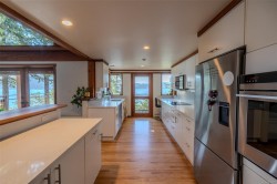 Architect-designed Hank Schubart waterfront retreat — sun-drenched, thoughtfully composed spaces with panoramic southwest views of Sansum Narrows and Vancouver Island. Move-in ready 3 bed, 2 bath plus serene studio (perfect for yoga, meditation or guests) with over 2,400 sq ft of finished living and an open, luminous main living area that flows to the water. Extensive upgrades include grid-tied solar with battery storage, metal roof, upgraded systems, and impeccably designed manicured landscaping with rainwater collection. A half-acre is deer-fenced containing a productive food garden that brims with annuals, perennials, shrubs and trees. Quiet, private yet easy access to ferries and area trails — a sustainable, restorative coastal haven where light, landscape and design harmonize.