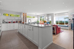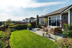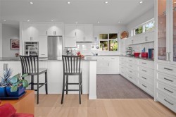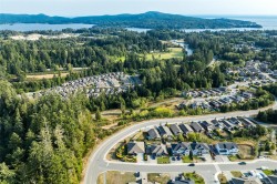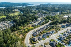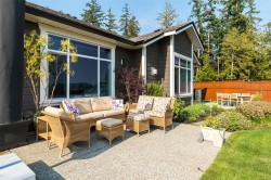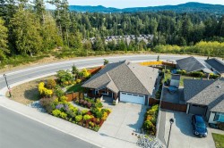 Spectacular, transformable 1613 sq ft, 3-bedroom, 2-bath home built with quality and efficiency in mind. Enjoy an elevated position with ocean, mountain, and forest views. The open, single-level design features 9-foot ceilings and abundant natural light. The kitchen boasts a full suite of Miele appliances incl. induction cooktop and convection wall oven, a large island, custom Baltic Birch cabinetry, and Caesarstone countertops. ELFA storage systems for flexibility. The main bedroom has two large closets, one walk-in, with customizable storage. The other two bedrooms feature built-in cabinetry and space-saving wall beds, with one also including a custom office desk. 5+ ft crawlspace under entire home for temp-controlled storage. Deer resistant plantings out front, private, fenced rear garden offers year-round enjoyment, including a garden shed, a glass-walled garden, and 9-zone irrigation. Unique residential-rural setting, short walk to trails along the Sooke River and local amenities.