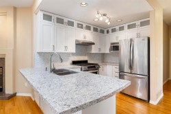 Superb 55+ half-duplex style end unit in a private, friendly 16-unit complex surrounded by majestic trees. 2281 sqft. bright, open layout with vaulted ceilings & skylights, ¾” hardwood, upgraded kitchen w/ Caesarstone & marble backsplash, gas stove, dream ensuite, hot water on demand & A/C. West-facing cedar deck & gardens. 2 bedrooms on & den on main + huge flex room upstairs & double car garage. You won’t be disappointed!