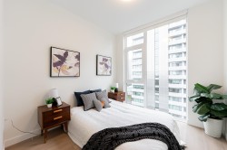 Brand new luxury high floor one bedroom home right in the heart of Surrey Centre just minutes walk to everything including world class shopping, restaurants, the Skytrain and Holland Park! This brand new luxury one bedroom home features the perfect layout with a gorgeous chef's kitchen and functional yet stylish kitchen island, right beside the spacious living room and balcony. The sizeable bedroom features a generous walk in closet and looks out from the 11th floor view. Century City features five star amenities, the perfect location, and strata including heating and cooling for your pleasure. Don't wait, come see it today! OPEN Sun December 21: 2-4pm.