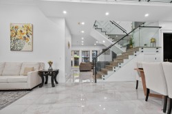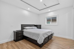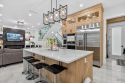 Stunning 2-storey Custom Home on expansive 7,700+ SQFT lot! Grand double-door entry, soaring ceilings, designer fixtures, chef's kitchen featuring premium acrylic cabinets, top-tier JenAir & Samsung appliances, built-in fridge, wall oven/microwave, massive island for prep & storage. Separate wok kitchen w/ gas range, stove, dishwasher. Upper level: 4 Bedrooms each w/ their own ensuites & Walk-in Closets. Legal 2-bed suite, plus main-floor bedroom w/ full bathroom. Luxury features: radiant heat, central A/C, central vac, integrated cameras & alarm. EV charger ready, ample parking for vehicles & RV. Easy-care yard w/ synthetic turf, paver stones, full fence.