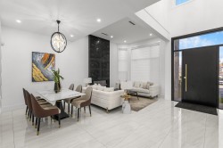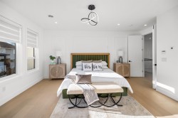 A gorgeous custom built home showcasing elegant design & modern living. The main level showcases formal living & dining rooms, expansive family room, nook, a chef’s gourmet kitchen with huge island, spacious spice kitchen, & pantry. Primary bedroom on the main floor or use as an office. Upstairs features a Primary bedroom & three additional bedrooms, each with its own private ensuites. The basement level is designed for entertainment & income, featuring a private theatre room with bar & full bathroom, plus two suites (2-bedroom & 1-bedroom). Radiant Heating, HVAC, & Air Conditioning throughout. Extra-wide driveway. Ideally located near both levels of schools, shopping, recreation centers, future SkyTrain Station, & easy access to major highways. Open House, Sat/Sun, Dec 20/21 2-4pm.