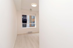 Welcome to Radley, 6 level condo development by West Fraser. This charming home offers 2 BEDROOM & 1 DEN, an open floor plan featuring a LARGE QUARTZ COUNTERTOPS, Samsung SS appliances, including an ICE MAKER FRIDGE. Laminate flooring throughout, West-facing covered deck, primary bedroom spacious walk-in closets, bedrooms CUSTOM-BUILT CLOSETS ORGANIZER, soft-close drawer, baseboard heating. With in-suite laundry, 1 parking spot, and 1 storage unit, convenience is at your fingertips. Just steps from the bus stop, Surrey Central SkyTrain, and SFU Surrey campus, everything you need is close by. The building offers fantastic amenities, including a fully-equipped BBQ area, lounge seating, entertainment rooms, a fireside lounge with kitchen, fitness center, and yoga studio.