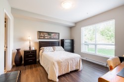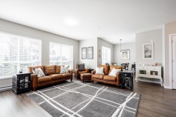 Award winning 'WATERSTONE' with deluxe facilities including pool & full gym! CORNER UNIT, 2 bedrooms + den, 2 bathrooms with wrap around deck facing greenspace! Oversized windows, high end kitchen featuring granite counters, S/S appliances and kitchen island with eating bar. Primary bedroom w/huge walk-in closet, 2nd 'corner' bedroom w/windows on 2 walls, huge wrap around deck, 2 underground secured parking spots & storage locker. 15,000 sq. ft. clubhouse, 60' indoor swimming pool, hot tub and saunas as well as pool table, 17 seat movie theater room, full gym! Great location close to future skytrain, Langley shopping, schools, and more. This is the one!