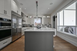 Exquisite custom-built mansion in South Surrey’s King George Corridor featuring dual driveways and triple garage with drive-through access. Main floor offers living, dining, family room, gourmet kitchen with spice kitchen, theatre room, and large covered patio. Upstairs includes 7 spacious bedrooms all with walk-in closets and 6 bathrooms. Legal 2-bedroom suite is a great mortgage helper. Radiant heat, A/C, and high-end finishes throughout. Prime location close to top schools, shopping, and all amenities.