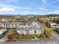 Experience the best of Cloverdale living in this stunning TOP-FLOOR corner unit at Clover Downs Estates! Perfectly located in the heart of Cloverdale yet quietly set back. Enjoy boutique shops, cozy cafés, and walkable streets that radiate small-town charm. Inside, discover granite countertops, stainless steel appliances, in-suite laundry, and a cozy electric fireplace. Unwind on the private balcony off the primary bedroom. Enjoy building amenities like the guest suite, gym, and lounge. Includes 2 parking stalls, a storage locker, and welcomes two pets (no size restrictions!). Whether starting fresh or downsizing, this home fits your next chapter beautifully.