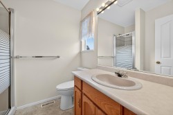 Welcome to this immaculate family home, perfectly situated on a quiet cul-de-sac with a sun-filled, south-facing backyard. This well-cared-for 2-level residence offers a bright, air conditioned and spacious layout featuring formal living and dining areas, a light oak kitchen with center island, gas cooktop, and wall oven, plus a cozy family room and versatile bedroom/den on the main floor. Upstairs boasts 3 large bedrooms, including a secondary bedroom with its own ensuite, and a spacious games room. Enjoy outdoor living with a beautifully landscaped private yard, an 8’ x 12’ powered shed and RV parking. Within walking distance to Diamond Private School, Cloverdale Traditional, École Martha Currie, Sunrise Elementary. Conveniently close to Willowbrook Mall, Hwy 17 & 10.
