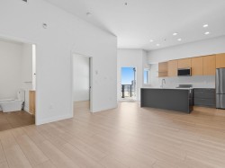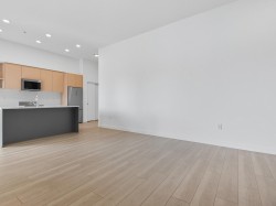 Penthouse!! 11 feet ceiling 1-Bedroom in Q5 – Designed for Contemporary Living. Welcome to your new home at Q5, a vibrant and meticulously planned community where comfort meets convenience. This brand-new 1-bedroom unit features 8-foot ceilings and expansive windows, creating a bright and airy ambiance throughout. The designer kitchen is a standout, boasting stainless steel appliances, quartz countertops, LED flush-mount lighting, and a stylish blend of wood grain and solid color cabinetry. Wide plank flooring and soaring ceilings elevate the modern aesthetic, sleek and sophisticated living space. Residents enjoy a comprehensive range of amenities, including: EV pre-wired parking, gym and yoga room, cozy fireside lounge, community gardens and close George Skytrain Station Parking & Storage