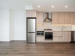 Modern Living at The Grand on King George. Stylish 1-bedroom + den, 1-bathroom condo on the 8th floor with 567 sqft of open living space and a 93 sqft balcony. Features include custom millwork doors, illuminated closet organizers, CENTRAL HEATING & COOLING, Wi-Fi-enabled Samsung appliances, GAS cooktops (included in strata fees), and efficient kitchen cabinet organizers. Enjoy 23,000 sqft of premium amenities: a private off-leash skypark, state-of-the-art fitness centre, VR room, outdoor BBQ and park area, playground, and 24/7 concierge. Conveniently located above five floors of commercial space with coffee shops, medical offices, and daycare at your doorstep. Less than 5 minutes’ walking distance from Gateway Skytrain Station, schools, and easy access to Highway 1.