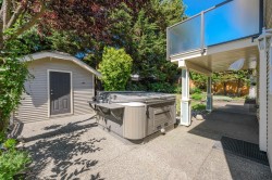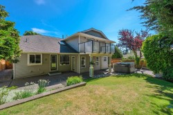 Well-maintained and move-in ready, this comfortable family home in the desirable McNally Creek neighbourhood on a quiet cul-de-sac, just a short walk to White Rock Beach. Freshly painted with new carpets, it offers 2,700+ sqft of practical living space: 5 bedrooms, 3 bathrooms, formal living and dining, a spacious family room, two fireplaces, and a functional kitchen. he upstairs master features a large walk-in closet, private balcony, and ensuite with soaker tub and separate shower. Additional bedrooms are generously sized. The lower level includes extra bedrooms and flexible space for a media room, office, or gym. West-facing backyard is private and sunny, with a full patio, hot tub, and ample room for kids or pets to play. Close to top schools, shopping, and golf courses.