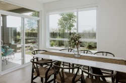 Ocean Row at Boardwalk - Coastal Living at Its Best Welcome to this stunning 3-bedroom, 2.5-bath end unit offering the perfect blend of privacy, comfort, and coastal charm. Inside, you'll find light-filled living spaces, an open-concept layout, overheight ceilings and fireplace. Large windows frame your back yard and patio bringing the outdoors in. Your Primary retreat features your own private patio for your morning coffee and gorgeous sunrises. The chef’s kitchen, 2 spacious bedrooms, and spa-inspired bathrooms offer style in every detail. Homeowners enjoy access to the Beach House Amenity including outdoor pool, jacuzzi, gym, yoga room, kids zone, work labs, first pits, Bbq's with dining, oceanside trails mere steps from your front door. Photos are representational only
