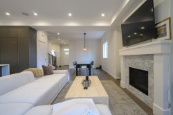 This exceptional property features a 2,208 sq.ft. main home plus a 642 sq.ft. detached coach home combining luxury, functionality, and flexibility. The main residence offers 3 bedrooms, den + flex room, 3 bathrooms and 10-ft vaulted ceilings. The gourmet kitchen impresses with a 6-burner 36"Wolf gas range, large island and opens to the back patio. The luxurious primary suite includes a walk-in closet and spa-inspired ensuite with heated floors, soaker tub, frameless shower, and double vanity. The fully detached coach home offers 1 bedroom & 1 bath. Located on the end of the lane, adjacent to the Tsawwassen Landing Park. Enjoy the clubhouse with pool, hot tub, gym, sauna, steam room, and more for just $200/month.