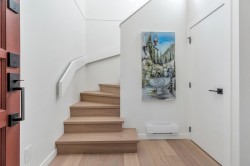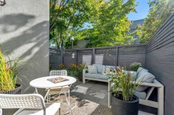 Absolutely Idyllic townhouse that has an amazing house-like feel. Whether you are downsizing or looking for your first home you will appreciate the oversized rooms, formal dining room, large kitchen and three private outdoor spaces. Thoroughly renovated, with many custom details including white oak engineered flooring, gorgeous imported porcelain tiles throughout and custom white oak coloured millwork throughout. The living room features a picture window overlooking the cherry blossom filled streetscape and a wood fireplace for cozy winter evenings. Generous windows and skylights offer morning and afternoon sun! This is absolutely the best walkable location with fantastic Mon Pitou coffee on the corner and future skytrain access. You will be impressed. 1 Parking. 2 dogs or cats allowed.