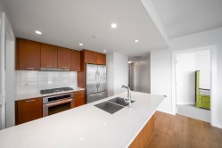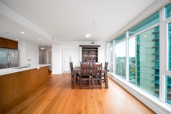 This exquisite 2-bedroom, 2-bathroom corner unit is located in an Airbnb-friendly building with stunning views of False Creek and English Bay. It features floor-to-ceiling windows that provide ample natural light, a gourmet kitchen with integrated appliances, a gas cooktop, quartz countertops, and modern cabinetry. Additionally, it boasts premium engineered hardwood floors, over-height ceilings, and air conditioning. The Mark offers luxurious amenities, including a well-equipped fitness centre, yoga room, sauna, steam room, outdoor pool, hot tub, garden and BBQ area, guest suites, party/game/meeting rooms, and a 24-hour concierge. 1 parking. Its excellent location allows for easy walking access to David Lam Park, seawall, and Yaletown SkyTrain station. Don’t miss Open house: Dec 6, Sat 2-4