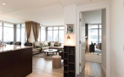 Experience elevated urban living in this beautifully furnished condo situated in the prestigious Patina building in Vancouver. With 1,058 square feet of thoughtfully designed space, this two-bedroom, two-bathroom residence offers a perfect blend of luxury and functionality, ideal for those who appreciate high-quality city living. The condo's modern kitchen is a chef's delight, featuring stainless steel appliances and elegant granite, stone, or quartz countertops, providing a stylish and efficient area for cooking and entertaining. The open-plan living space, complete with a flat-screen TV, offers a comfortable environment for relaxation and socializing. Air conditioning ensures a comfortable climate throughout the year, while in-suite laundry adds convenience to your daily routine.