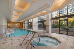 Meridian Cove – a premier concrete residence, fully rain-screened in 2023 with new triple-pane windows and is now EV-ready. This beautifully renovated 2-bed, 2-bath home showcases hardwood floors, a modern kitchen with stone countertop, stainless steel appliances, and updated bathrooms with elegant finishes. Thoughtfully designed by Urban Presentations, the cohesive interior exudes warmth and sophistication. A quiet west-facing outlook enjoys views of the tranquil inner courtyard. This suite includes 2 parking and a locker. Residents enjoy resort-style amenities including a saltwater pool, hot tub, sauna, steam room, fitness centre, garden courtyard, library, and hobby rooms. Steps to Granville Island, West 4th, and Broadway’s cafés and boutiques. Very proactive and sought after building!