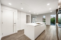 This luxury Kitsilano residence offers quiet concrete construction, North Shore mountain views, and a relaxed beach-side lifestyle. Backing directly onto the Arbutus Greenway and steps to parks, West 4th, cafés, shopping, transit, and the future Broadway SkyTrain. Interiors by award-winning designer Christina Oberti feature 9' ceilings, engineered hardwood, and oversized windows. The contemporary kitchen includes Scavolini cabinetry, quartz counters, marble backsplash, LED lighting, and full Miele appliances. Spa-inspired bathrooms offer Nuheat flooring, Italian glass showers, and Kohler fixtures. Secure parking, storage, bike rooms, monitored safety systems, and a full 2-5-10 warranty complete this exceptional home.