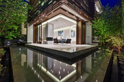 Experience unparalleled luxury in this modern Balinese-inspired villa by G. Wilson, designed by Arno Matis Architecture/RUF Project. A grand foyer welcomes you with soaring 12’ ceilings on both the main level and basement. Exquisite details include custom Italian marble, elegant millwork, and spa-like ensuites. The chef’s kitchen features Miele & Gaggenau appliances, while floor-to-ceiling doors create seamless indoor-outdoor living. The primary suite boasts a lounge area, inner-lit onyx fireplace, and spa-inspired ensuite. A LaScala smart home system integrates lighting, HVAC, audio-visual, and motorized blinds. Outdoor spaces include daybeds, a 48" BBQ, firepits, a hot tub, and stunning water features by Paul S. This is the epitome of luxury living.