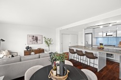Live above it all at Woodwards W43! This spectacular 35TH FLOOR home offers panoramic city, water & mountain views through floor-to-ceiling windows. Hitting the market for the first time, this residence showcases bespoke finishes including refined ceilings, hardwood flooring, and stone countertops. The open layout seamlessly connects the modern kitchen to the bright living space, creating an elevated sense of flow and comfort. Spa-inspired baths add a touch of luxury, while great parking enhances everyday convenience. Enjoy world-class amenities: rooftop lounge, fully-equipped gym, media room and 24/7 concierge. All of this in the heart of vibrant Gastown, steps to dining, shopping and transit. A rare opportunity to own an iconic Vancouver home.