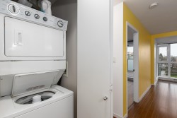 Fantastic Mt. Pleasant location. Bright and quiet south facing 1 bedroom/ 1 bath concrete home in Stella. Functional and spacious floor plan with an open kitchen featuring large island, gas range and lots of counter and cabinet space. Floor-to-ceiling windows in both living room and bedroom providing excellent natural light. Enjoy the sun on the large south-facing balcony ideal for gardening, overlooking a quiet green courtyard. Large in-suite storage room which makes a great home office or flex room. Bathroom and balcony have access from both the bedroom and living area. Quiet concrete building with a gym and courtyard on 3rd floor, well managed strata and great neighbors. Steps to shops, cafes, new Mt. Pleasant subway station and daily essentials with a walk score of 99.