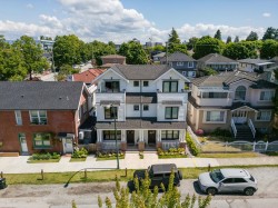 A stylish and spacious townhome in the heart of East Vancouver. Located just off Nanaimo & 34th, this three-bedroom + flex home blends modern comfort with heritage charm as part of the beautifully restored Century House collection. Enjoy a smart, family-friendly layout with a full basement media room and versatile flex space—perfect for a home office, gym, or creative studio. The top-floor primary suite features vaulted ceilings, a double vanity ensuite, and a private balcony with city and mountain views. Two more generously sized bedrooms offer flexibility for kids, guests, or work-from-home needs. Street-level access, abundant street parking, and a walkable location near Cunningham Elementary, T&T, parks, and transit.