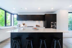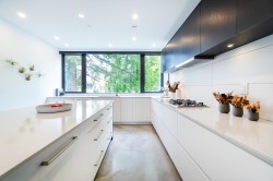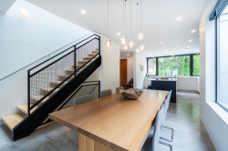 This architecturally designed West Coast Modern home in cool coveted East Van blends timeless elegance with lush, natural surroundings. Meticulously maintained, it features premium materials chosen for comfort, style, and longevity. Expansive Cascade windows frame lush gardens and North Shore Mountain views, filling the home with light. The open-concept layout is anchored by a massive kitchen island and enriched with custom millwork and designer touches-like a solid oak floating staircase. Clad in sleek, maintenance-free aluminium composite panels, the exterior will never need painting. Curated gardens with indigenous plantings and a living roof atop the Laneway Home add a sustainable flourish. The laneway home and the lower-level suite offer strong mortgage support.