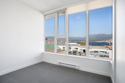 This is the one you've been waiting for! North Facing home with UNOBSTRUCTED WATER & MOUNTAIN VIEWS at Strathcona Village. One of the most desirable 1 bedroom floorplans with 619 square feet of living space, plenty of windows, and a balcony perfect for enjoying the beautiful views of the harbour & the North Shore Mountains. Gourmet kitchen with stainless steel appliances, tons of counter & cabinet space with bar seating, a Den/Solarium with window that is ideal to work from home & an extra office/flex room. Amenities include fitness centre, meeting rooms, landscaped rooftop terrace & even garden plots to grow your own fruits/vegetables. 1 parking included.