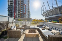 This private, corner townhome is a true modern-day retreat. Thoughtfully renovated with sleek, contemporary finishings, it exudes style and comfort in every detail. Bright and inviting, the home speaks for itself — but the outdoor spaces take it to another level. Enjoy three distinct outdoor experiences: a lush, private garden entrance; a serene patio off the primary bedroom complete with your own private hot tub; and a massive 500+ sq ft south-facing rooftop deck for sunset dinners and lively gatherings in the glow of BC Place's gorgeous lights. All this just steps from sky train, restaurants, entertainment, Rogers Arena, and boutique shops. A rare blend of city living and private sanctuary close to all the city's best offerings! OPEN SAT DEC 6TH 2-4.