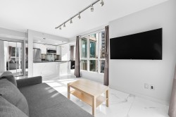 Stylish updated 1-bedroom, 1-bath corner suite in the heart of Downtown offers 550 sq.ft. of smart, modern living—perfect for first-time buyers or investors. Enjoy a bright open-concept layout with city views and a beautifully designed kitchen featuring custom cabinetry, stainless steel appliances, and sleek quartz countertops. Residents enjoy fantastic building amenities, including an indoor pool, hot tub, gym, bike room, and a peaceful garden courtyard. With shopping, dining, the seawall, and transit just steps away, this location offers the ultimate urban lifestyle. Comes complete with 1 parking and a storage locker. Don’t miss this exceptional opportunity