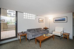Experience stunning views of False Creek and Yaletown from this beautifully appointed CORNER UNIT in The Discovery. This spacious 2 bedroom, 1.5 bathroom residence offers the perfect blend of comfort and convenience. The updated kitchen features a brand new dishwasher, hood fan and garburator, all complemented by a west facing balcony - ideal for relaxing and watching breathtaking sunsets. The home boasts updated laminate flooring throughout. Spacious living room and dining rooms. The two oversized bedrooms offer ample space, with the primary bedroom featuring a full ensuite bathroom. Laundry room and powder room complete the home. Amenities include fitness centre, party room, sauna, hot tub, guest suite, garden, and library.