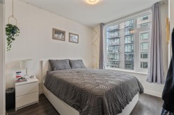 New Price! Vacant Possession available February 1st. Yates on Yates was built by Chard Developments with luxury finishes and luxury amenities. This quiet 11th floor sleek and stylish home offers expansive windows inviting in an abundance of natural light while framing dynamic city views. The designer kitchen impresses with integrated Fisher & Paykel appliances, custom cabinetry, quartz countertops with matching backsplash. The inviting living area flows to a private covered balcony—perfect for enjoying the skyskape and urban backdrop. The spacious bedroom features an oversized walk-in closet, while the elegant bathroom includes in-floor heating. Additional highlights: in-suite laundry and an A/C heat pump, designated bike storage, storage locker and a pet wash station. A stunning wrap around rooftop patio with gardens, children's play area, BBQ's & lounge area. Just steps from the Inner Harbour, top restaurants, cafés, and boutique shopping—experience the best of city living!