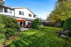 Fantastic 3 bedroom, 3 bathroom 1582 sq ft Townhome centrally located; close to Urban Grocer, Christies Pub and everyone's favourite, Goodside Pastries. Set back from the road this 2 level home is quiet and peaceful with a glorious south facing patio and garden. You enter into the cozy living room with new electric fireplace (gas available) and vaulted ceiling. Beyond the living room is the open kitchen, family room and dining room with patio doors to the back patio. Also on the main floor you will find the large laundry room/mudroom just off the garage & 2 piece bathroom. Upstairs are three bedrooms (primary with WI closet and ensuite (heated floors)) & a guest bathroom. The current owners have tastefully renovated their home over the years - new maple hardwood, new carpeting and paint throughout; new cupboards, quartz counters, backsplash and stainless appliances in the kitchen; bathrooms with porcelain tile. Homes in this 6 unit strata rarely come to market! OH Sunday Dec 7th 1-3