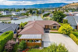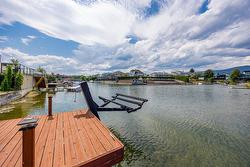 professionally renovated 3-bedroom walkout rancher offers over 3,600 sq. ft. of luxurious living space. The bright, open floor plan flows seamlessly from the gourmet kitchen, boasting a granite island, custom wood cabinetry, stainless steel appliances, and a gas range to the inviting living areas with maple hardwood floors. The main level features a sophisticated master suite, a private office, and an inspiring art studio. Downstairs, a spacious family room, and a convenient guest or in-law suite complete with its own laundry and private entrance provide ample flexibility. Enjoy modern amenities like a Navien instant hot water system. Heading outside, you are welcomed by captivating views of the canal waterway and the picturesque Mission Hill Winery bell tower. Outdoor entertaining is a dream with a covered patio, a charming timbered pergola, a main level deck, and a beautifully landscaped, east-facing front courtyard. And as expected with a property on the waterway, this home on prestigious Pritchard Drive offers a newer dock with 4000 lb electric boat lift for your private moorage. With an impressive front entry, a double garage, covered pergola carport, this is an unparalleled opportunity to embrace the best of Okanagan living. New roof.