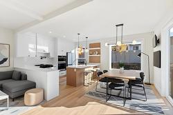 Welcome to The Trails — a stunning new build in one of West Kelowna’s most desirable communities! This 3,248 sq ft, 5-bedroom, 4-bathroom contemporary home stands out with its 2-bedroom legal suite and rooftop patio, offering both lifestyle and long-term value. The main floor features an open-concept layout with wide-plank hardwood floors, quartz countertops, and a feature accent wall that adds warmth and modern character. The kitchen includes stainless steel appliances and bold black hardware and fixtures. A large mudroom connects to the double garage, providing everyday convenience, while a powder room completes the level. Upstairs, the primary suite delivers a luxurious retreat with deck access, a custom feature wall, walk-in closet, and spa-inspired ensuite with dual sinks, glass shower, and freestanding tub. Two additional bedrooms, a full bath, and a laundry room with sink complete the upper floor. The bright legal 2-bedroom suite below offers its own laundry, full kitchen, and private entrance — ideal for extended family or rental income. Enjoy three outdoor decks, including a rooftop patio with gorgeous mountain and valley views — perfect for entertaining or relaxing. The synthetic turf backyard provides low-maintenance living that’s also great for kids and pets. . Additional highlights include Step Code 3 energy efficiency, ample parking and storage, hot water on demand, alarm system, EV-ready double garage, and full blinds package! GST applicable.