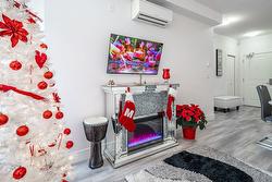 Both bathrooms have been completely updated with sleek, glossy tile finishes, and a new washer and dryer adds everyday convenience. The hallway leads to two spacious bedrooms, including a luxurious primary suite with a private ensuite and walk-in closet.
