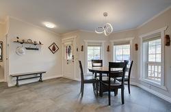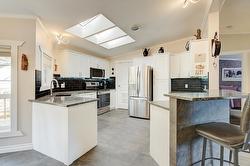 Step inside and you’ll immediately notice the thoughtful upgrades that set this home apart. The kitchen features updated cabinetry, granite countertops, and stainless-steel appliances, while both bathrooms have been modernized with new sinks, toilets, and granite surfaces. Heated tile flooring runs through the kitchen, dining area, hallway, bathrooms, and laundry room — with engineered hardwood in the living room and primary bedroom.