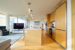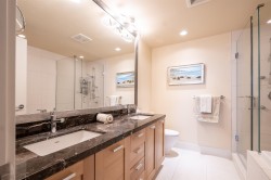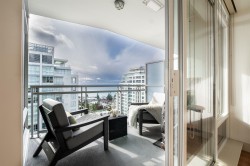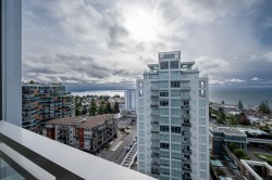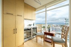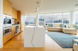 Executive living at the Miramar Village! Step into luxury living with this exceptional 2bdrm 2bath plus flex space home in the heart of White Rock’s Miramar Village. Thoughtfully designed and tastefully upgraded, this home offers a rare blend of elegance and functionality. The gourmet kitchen features stunning quartz countertops with a waterfall island,custom cabinetry that transforms the flex space into a stylish bar and wine fridge, a Miele coffee station is there for your morning indulgence. Enjoy breathtaking views from sunrise over Mt. Baker to sunsets over the Gulf Islands. Floor-to-ceiling windows bathe the space in light, while central AC gives year-round comfort. Are you a car enthusiast? This unit comes with a private 5-car garage—an ultra-rare offering in condo living.