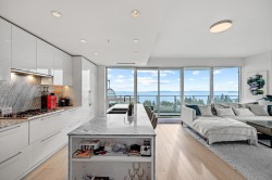 STUNNING MOUNTAIN/OCEAN/GULF VIEW!!Welcome to Foster Martin, an exceptional luxury condo in the heart of White Rock. This stunning 2beds 2.5baths unit offers a lifestyle of elegance. Large floor to ceiling windows, open concept gourmet kitchen w/full size Miele integrated appliances & glossy cabinets, Spacious living room,& separate laundry room, engineered hardwood floor throughout the resident. As a resident, you will have access to 10,000sqf health & wellness amenities including an indoor/outdoor pool, a full service concierge. Unit also comes w/2 parking stalls and 2 lockers!! Steps away from Semiahmoo Shopping Centre, Central Plaza, and White Rock Beach, this home is perfect for those seeking luxury, convenience, and comfort. School catchment WhiteRock Elementary & Semiahmoo Secondary
