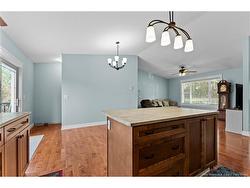 Welcome to 31 Lyman Street in Burton, where country charm meets modern comfort. Tucked away on a quiet, dead-end street with no through traffic, this walkout bungalow sits on a private, landscaped 2-acre lot. Enjoy the peace of rural living while being less than 10 minutes to Oromocto, about 25 minutes to Fredericton, and minutes from CFB Gagetown. Step up to the covered front porch and into a bright, open-concept main living area with 10-ft vaulted ceilings. The kitchen offers custom cabinetry and flows into the dining and living spaces, where patio doors lead to your two back decks, perfect for relaxing or entertaining. The attached double garage is conveniently located off the kitchen. Down the hall is a spacious primary suite featuring a custom tile, doorless shower in the ensuite, 2 more bedrooms, and a main bath. Finished lower level with walkout, complete with 8-ft ceilings, features a large family room/theater room, an oversized 4th bedroom, a home office, spacious third bathroom, laundry area, and mechanical room. The backyard is level and suitable for parking an RV and space for an above ground pool. With its peaceful location, modern features, and thoughtful design, this home delivers the perfect blend of comfort, privacy, and convenience.