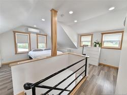 When Viewing This Property On Realtor.ca Please Click On The Multimedia or Virtual Tour Link For More Property Info. Located in the beautiful coastal region of New Bandon, this property offers an idyllic lifestyle with breathtaking ocean views and stunning sunsets. Nestled in a sought-after area, it combines tranquility, natural beauty, and proximity to services, all within the wide-open landscapes of the Acadian coastline. The house, fully renovated with modern taste, impresses with its warm and contemporary style. The main floor features an open-concept layout including a kitchen with ample storage, a welcoming dining area, and a bright living room. A large family room with panoramic windows allows you to enjoy the magnificent ocean view at all times. A full bathroom combined with a convenient laundry room completes this level. Upstairs, the loft space has been converted into a spacious primary bedroom offering both comfort and privacy. This level also includes a full bathroom, adding a touch of luxury and convenience. Outdoors, a large covered back deck invites you to relax while enjoying the breathtaking ocean views. A garage provides additional storage or space for hobbies. For comfort, the home is equipped with oil and electric heating, along with heat pumps for efficient year-round heating and cooling. For added peace of mind, a propane generator system ensures backup power in case of outages. The durable metal roof is another valuable feature.