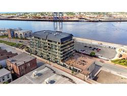 This stunning 1037 sq ft condominium in uptown Saint. John, NB, overlooks the harbour with both westerly and southerly exposures, offering breathtaking sunset and scenic views. The spacious wrap-around newly tiled deck is perfect for outdoor entertaining and relaxing. Inside, the home features two bedrooms plus a den/office, along with a private primary ensuite that includes a bathtub, stand-up shower, double vanity and WI closet. An additional full bathroom adds convenience. The apartment boasts hardwood floors and ceramic tile throughout for a stylish, durable finish. Located close to uptown restaurants, entertainment, theaters, and shopping, you'll enjoy vibrant city living. The building offers underground heated parking, a fitness room, a guest suite, and a community space ideal for social events, fostering a welcoming neighbourhood. Condo fees are $601.46 and include heat, electricity. hot water, sewage and garbage removal, and M-F 9-4pm reception.Please note taxes reflect non owner occupied. This residence combines comfort, elegance, and an unbeatable location, making it an exceptional waterfront lifestyle opportunity.