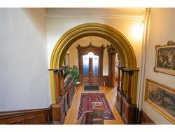Recently featured in the Globe and Mail as house of the week in Canada. Built in 1885, this remarkable residence stands as one of Saint John’s most ornate and historically intact single-family homes. Stepping inside you’re greeted by the home’s grandeur, a beautifully detailed archway in the foyer sets the tone for the period charm that follows. To the left are two impressive parlours with 13-foot ceilings, large pocket doors, stately marble fireplaces, crown moldings, original unpainted woodwork, and tall bay windows with original wood shutters that fill the rooms with natural light. At the rear of the main level sits a spacious kitchen with direct access to the sunroom and private green space, perfect for relaxing or entertaining. The lower level reveals a stunning room believed to be the home’s original dining area, complete with a built-in cabinet and a butler’s pantry. This level also includes a laundry room, full bath, office space, and a fourth bedroom with private walkout access to the backyard. Upstairs features two large bedrooms, one with an ensuite, the other with a walk-in closet plus an additional full bath. A smaller front room offers flexibility as a third bedroom or home office. Outside, a paved driveway leads to a large 22' x 21' two car garage, while the Italianate exterior showcases rich stone carvings and ornate detailing that make this landmark truly one of a kind. A rare opportunity to own a piece of Saint John’s architectural history.